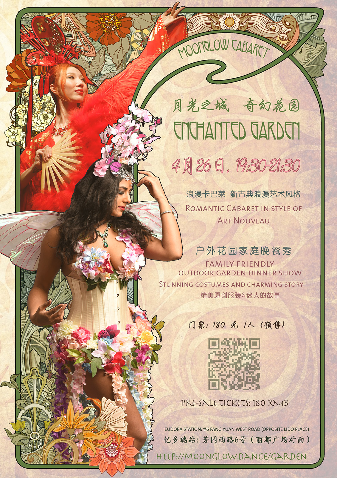 5月18日,月光之城将在INCEPTION的舞台奉献上完整的“奇幻花园”卡巴莱。别错过同美丽的古典女神们漫步在花园深处。包括5小节,每小节约12分钟,月光女神们将带你进入花园深处去探寻。