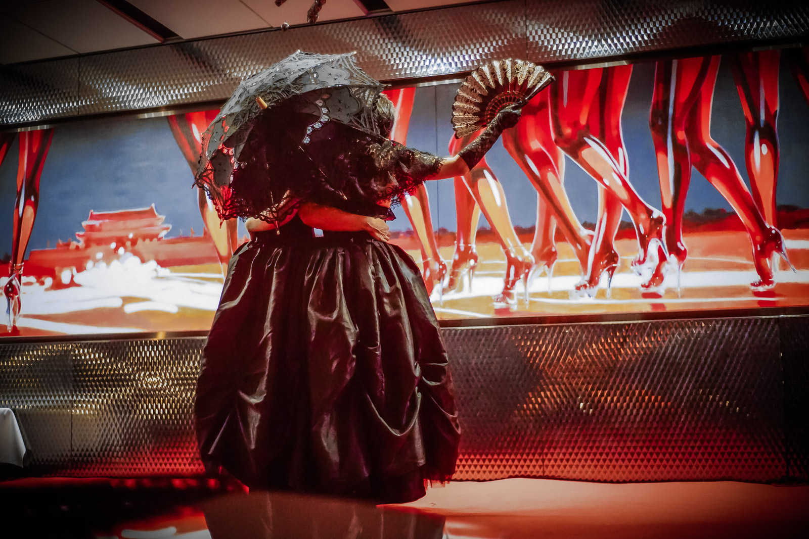 dsc01416 Published November 8, 2016 at 1600 × 1067 in Photos from Black Lace Halloween Masquerade “黑蕾丝哥特蒙面舞会”演出照片 The night finale: Moonglow twins Shirley and Trixie conjoined at the hip 谢幕演出: 月光之城Shirley 和 Trixie 的联体双胞胎